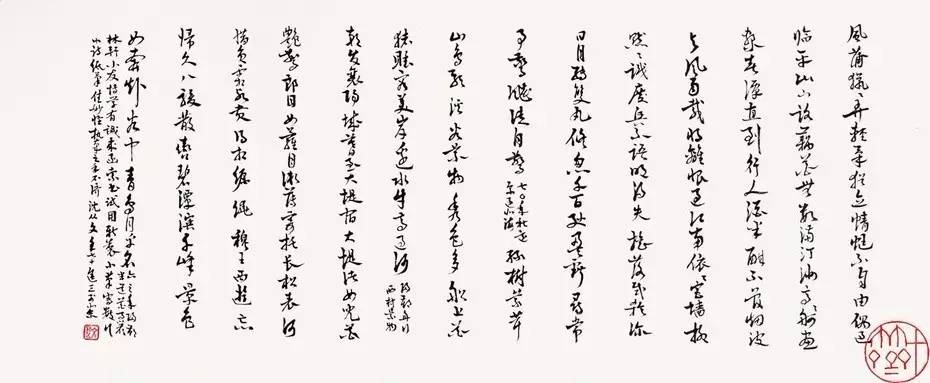 著名作家汪曾祺在《沈从文先生在西南联大》一文中,对老师沈从文的书法作了描述:“沈先生的娱乐,除了看看电影,就是写字。他写章草,笔稍偃侧,起笔不用隶法,收笔稍尖,自成一格。他喜欢写窄长的直幅,纸长四尺,阔只三寸。他写字不择纸笔,常用糊窗的高丽纸。他说:‘我的字值三分钱!从前要求他写字的,他几乎有求必应。”
