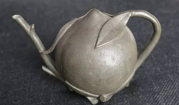 清代沈郎亭制倒桃锡壶,原为唐云旧藏,后转赠徐孝穆