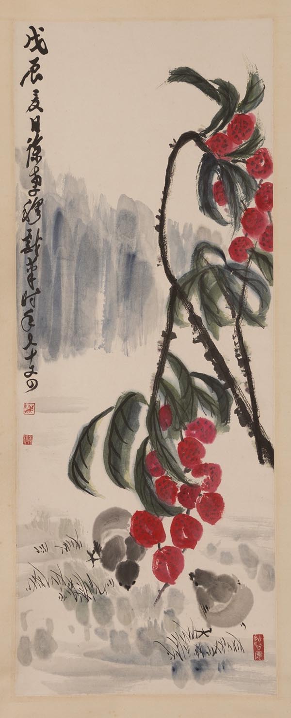 有一则轶事世人津津乐道:唐云是“进贤楼”“万航楼”“凭栏櫊”“竹石斋”(均为徐孝穆书斋雅号)的常客,随来随坐,喝酒就餐是家常便饭。一次唐云在雨中充当不速之客,未遇主人,见桌上有一块自己绘的兰花、生梨、荸荠臂搁放在桌上,便兴致所至,在此臂搁背面随手画下“山下有树、树中藏屋”一景,并题:“冒雨访孝穆不遇,作此而去。一九六五年八月廿九日,大石”。知音心有灵犀,孝穆见之,再默默地将此图浅刻成品,真是别有情趣。