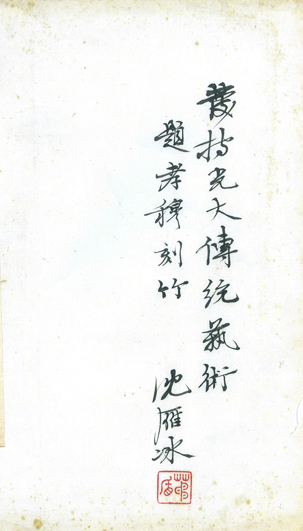 1963年10月中旬,孝穆有事出差去北京,住在沙滩红楼故宫博物院的研究所。择日他持自己竹刻手拓本和几件作品,到北京西河沿8号去拜访郭沫若。不料郭沫若有事外出未遇,孝穆只得将拓片及作品留下请郭先生教正。次日,孝穆意外收到郭沫若秘书专程送来的一封亲笔信,用的是“中国科学院”信封,上面写着“徐孝穆同志”五个大字以及他住所的名称。内容用毛笔写在一页中国旧式竖条信笺上:“孝穆同志:刻竹留底,铁笔撝运自如,气韵生动,不可多得。外承瘦铁以所绘扇面,及大作刻竹扇骨惠赠,谢甚谢甚。瘦铁处烦代致谢意。专此,顺颂百益。郭沫若十月廿一日”。