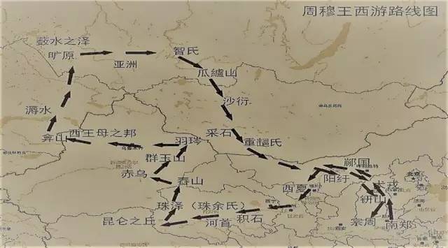 《穆天子传》以日月为序,详细记载了周穆王驾八骏西巡天下之事,行程三万五千里,并会见西王母的浪漫故事。但穆天子西行具体路线如何,学界研究颇多分歧,感兴趣的朋友可以自行检索。本文认同其西行足迹远至新疆天山一带。