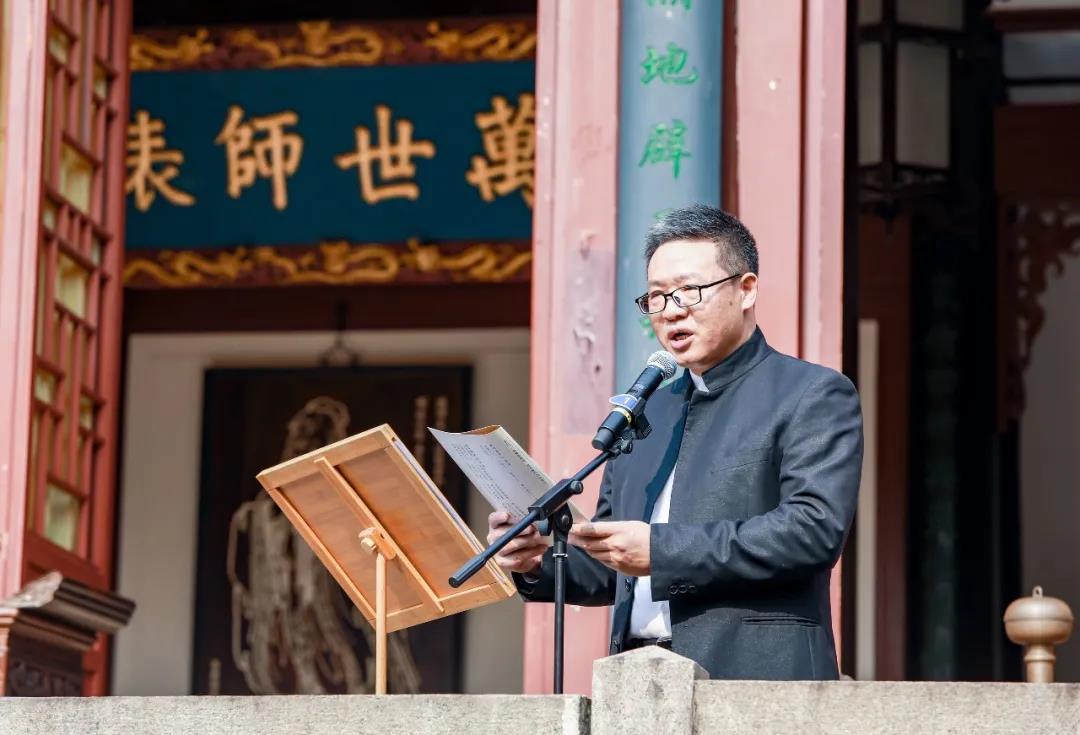 释奠礼由院长肖永明担任初献官,党委书记陈宇翔担任亚献官,邓洪波教授担任终献官,副院长杨代春、贺志军担任分献官,书院本硕博学生代表担任执事。朱汉民教授担任读祝官恭读祭文。李清良教授担任通赞主持仪式。