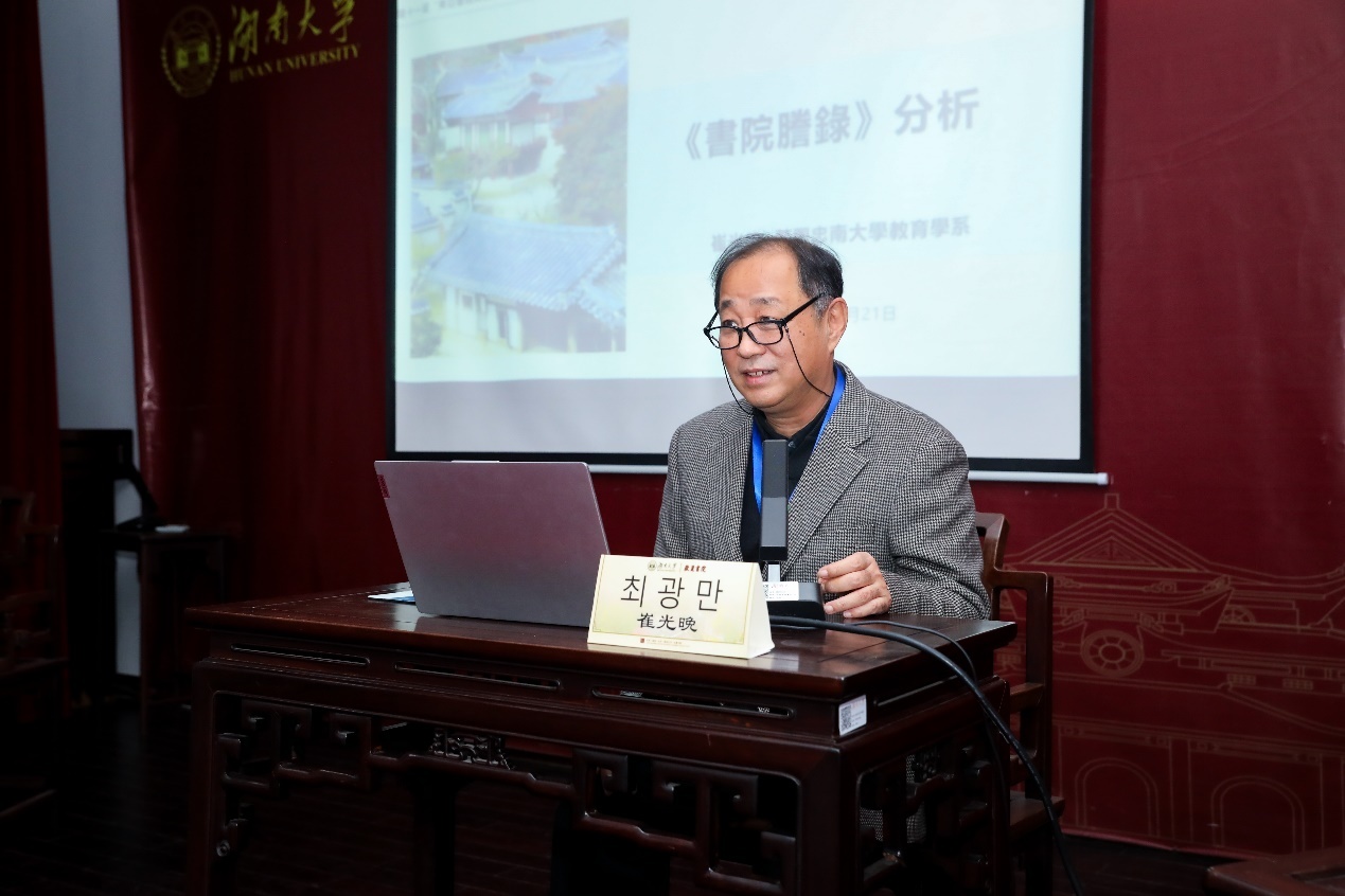 第一场主旨报告由东北师范大学明清史研究所所长罗冬阳教授主持、评议。韩国东国大学朴钟培教授、韩国忠南大学崔光晚教授、湖南大学岳麓书院邓洪波教授分别就“武城书院院规的起源及内容特征”“《书院誊录》分析”“日本书院文献概述”等专题进行了多维度的解读,详细讨论了韩国书院和日本书院的历史发展情况及其特色。