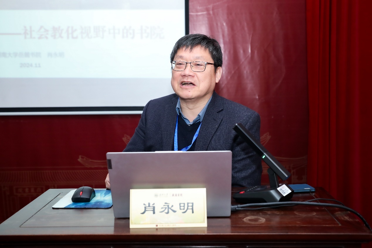 肖永明院长简要介绍了岳麓书院的发展历史及学科建设情况,并希望中外书院学者借本次会议加强学术合作与交流,从书院文化与精神中汲取力量,推动书院研究的长期发展。
