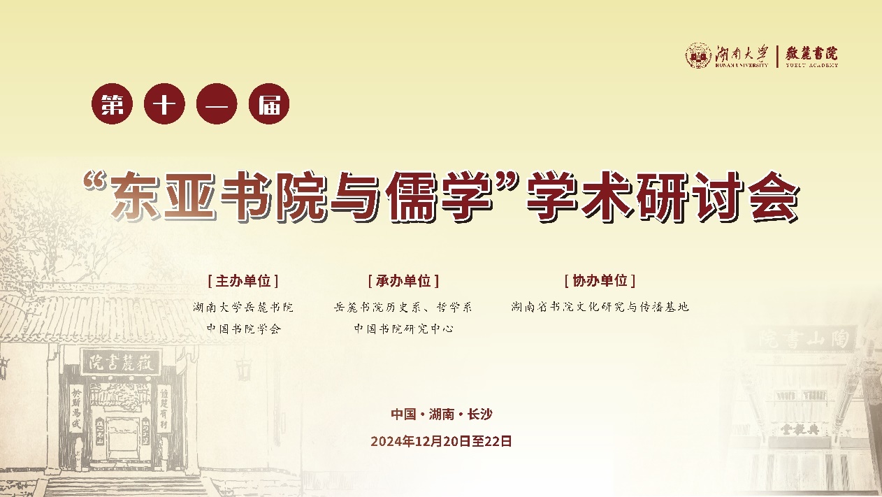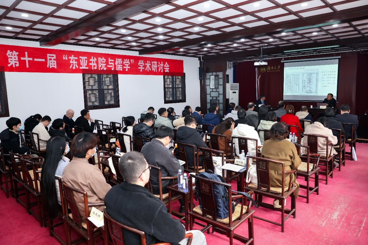 12月20日至22日,第十一届“东亚书院与儒学”学术研讨会在湖南大学岳麓书院举行。来自韩国东国大学、韩国忠南大学、中国社会科学院、西安交通大学、武汉大学、东北师范大学、贵州大学、河北大学等国内外高校或机构的50余位专家学者参会。本次会议由湖南大学岳麓书院、中国书院学会主办,岳麓书院历史系、哲学系、中国书院研究中心承办,湖南省书院文化研究与传播基地协办。会议包括开幕式、主旨报告、分会场讨论、闭幕式等环节。