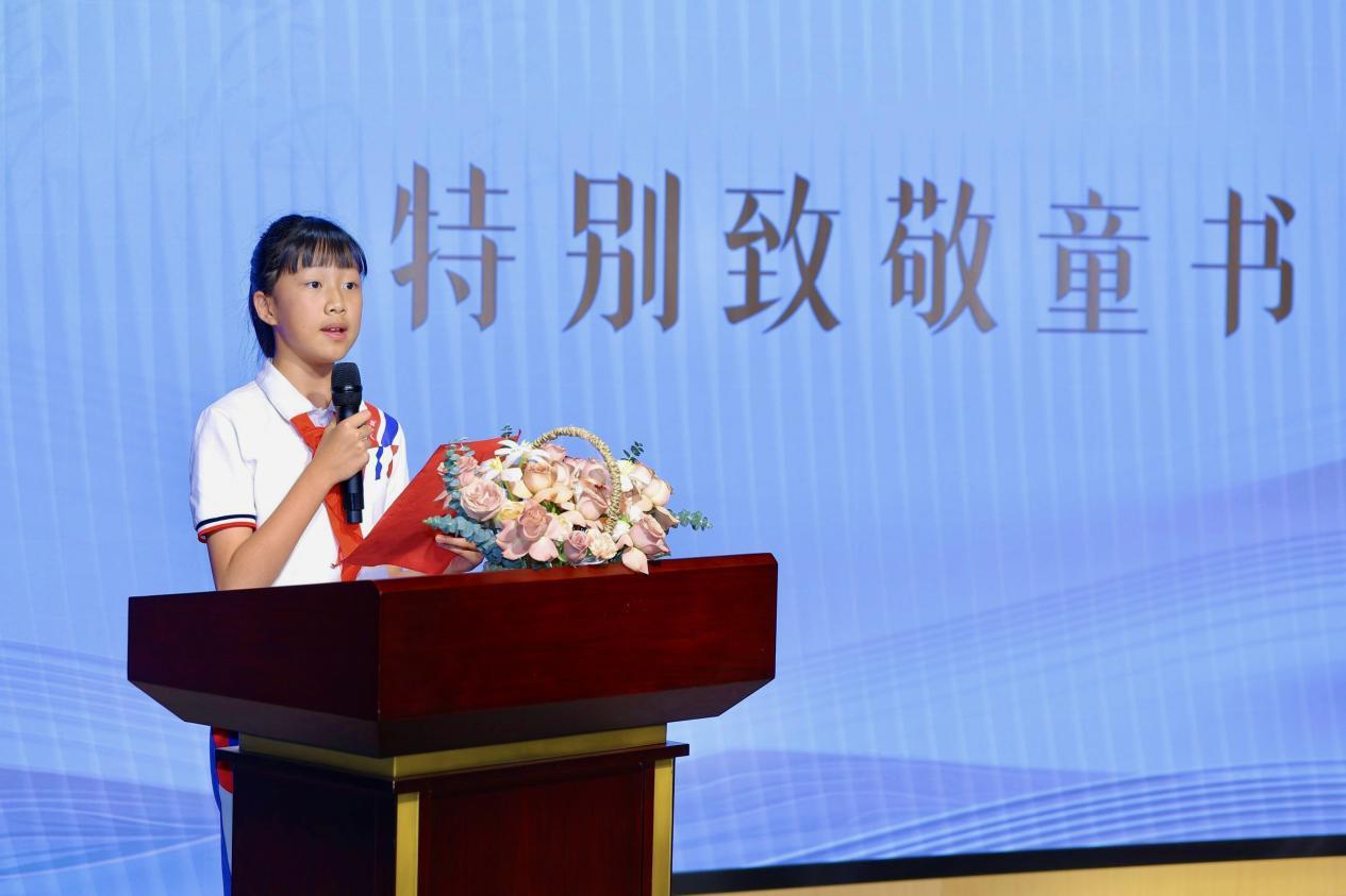 活动尾声,“特别致敬童书”环节将氛围推向高潮。来自北京景山学校通州分校四(1)班的邸洋讲述了自己在几年中深度沉浸在“新阅读童书榜”推荐作品中的成长感悟,并代表孩子们向童书《我爱妈妈 我爱爸爸》表达了特别的敬意。《我爱妈妈 我爱爸爸》是由“新阅读童书榜”创办人朱永新教授和知名插画家郁蓉共同为孩子们创作的一本成长之书,讲述父母之爱的深厚、亲子之情的珍贵。该书自出版以来荣获国内外诸多荣誉,深受大小读者和专家学者的一致好评。